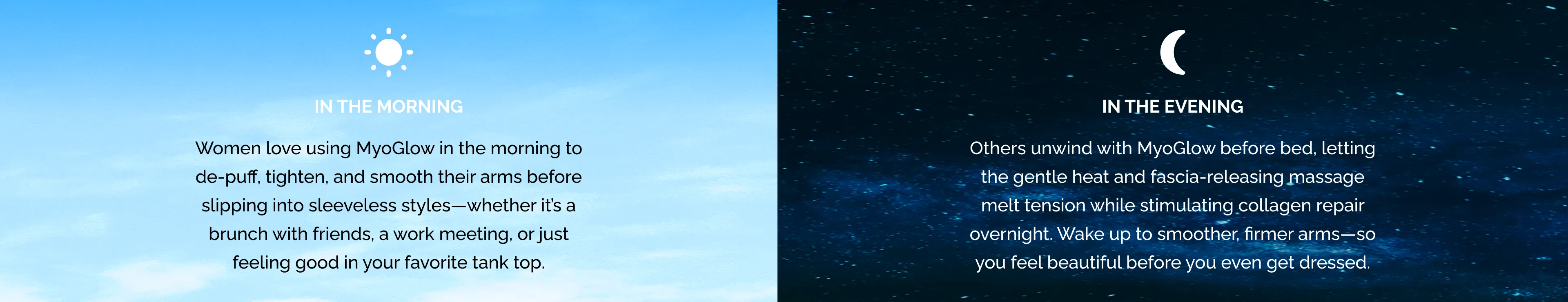 With MyoGlow, you can finally discover how 4 world‑renowned beauty treatments will visually lift, firm & tighten your arms.
