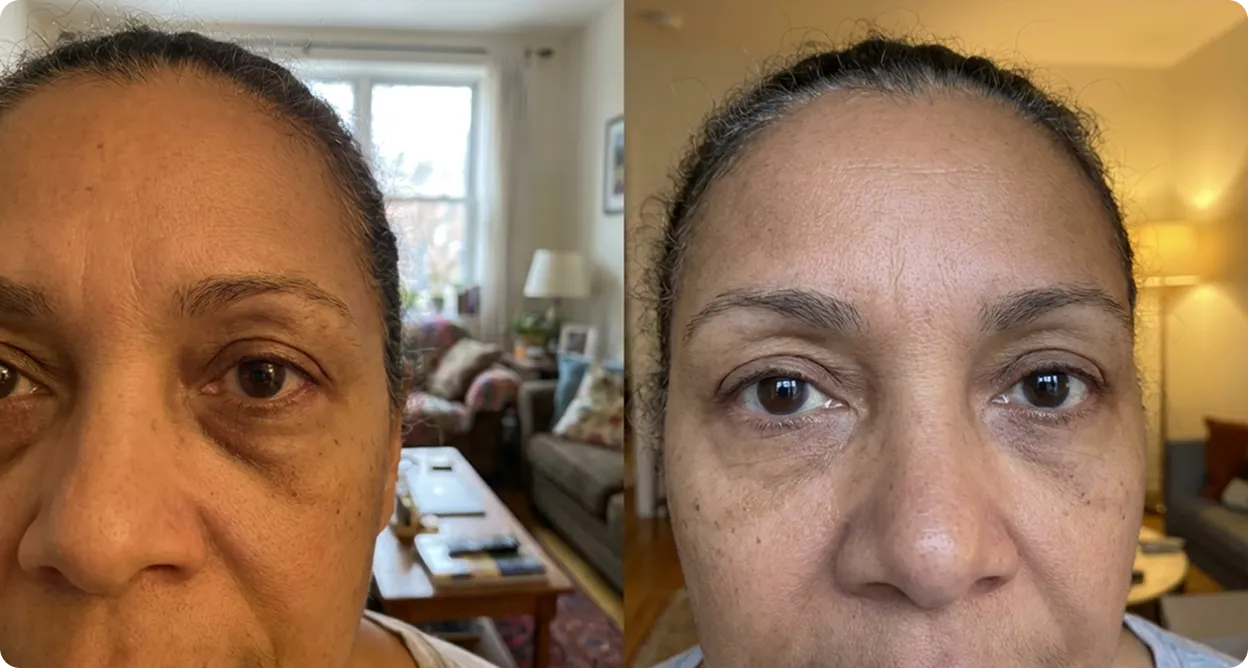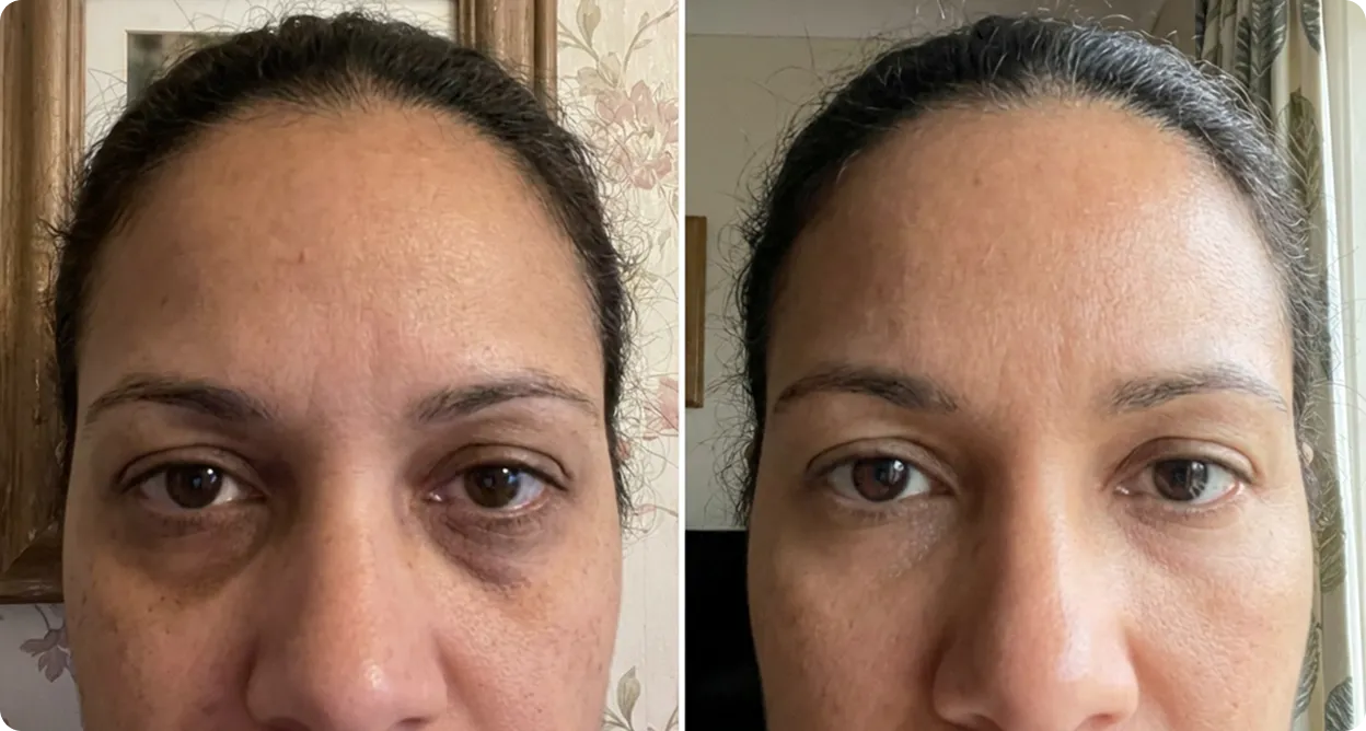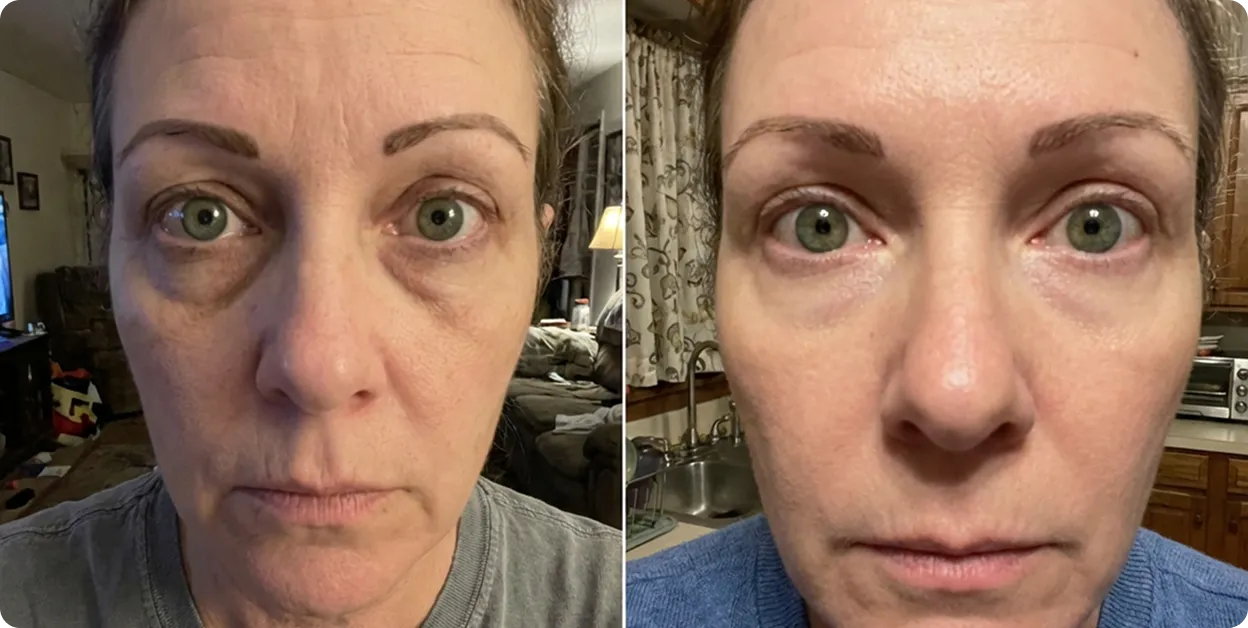 "I was two weeks away from booking tear trough fillers. My friend told me to try this first. It's been 6 weeks and I canceled the appointment. My husband noticed before I even said anything."